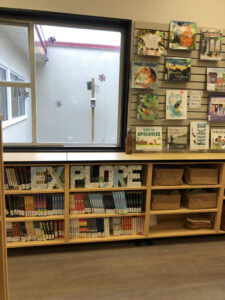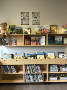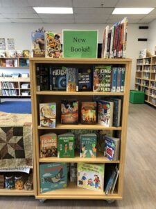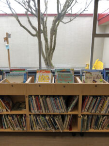 Rak buku yang menghadap ke depan penataannya melibatkan pembaca termuda kami. Sirkulasi buku bergambar kami meningkat cepat sejak rak ini dipasang!
