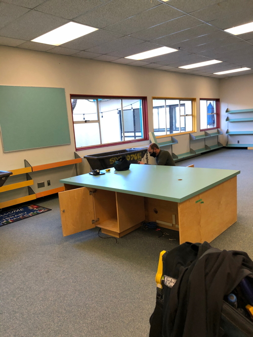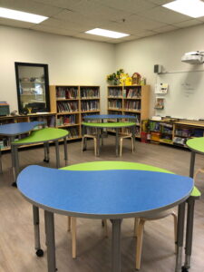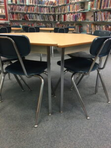 Seiring dengan daftar ruangan yang semakin bertambah banyak menunjukkan bahwa perpustakaan kami harus direnovasi secara besar-besaran untuk mewujudkan visi kami. Meja yang ada di layanan sirkulasi dan ruang komputer siswa saat ini sangat besar dan tidak bisa dipindah-pindah. Keduanya perlu diganti dengan versi yang lebih kecil agar kami bisa memiliki ruangan yang lebih luas dan fleksibel seperti yang selalu kami nanti-nantikan. Kami juga merasa karpet yang sekarang perlu diganti karena kami merasa kesulitan saat memindahkan rak buku beroda di atas permukaan berkarpet.