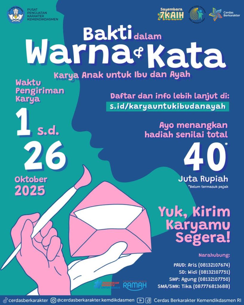 Selain menjadi ruang berbagi inspirasi, peserta sayembara juga berkesempatan meraih penghargaan nasional yang bisa memperkuat semangat mereka dalam berkontribusi pada perkembangan karakter bangsa.