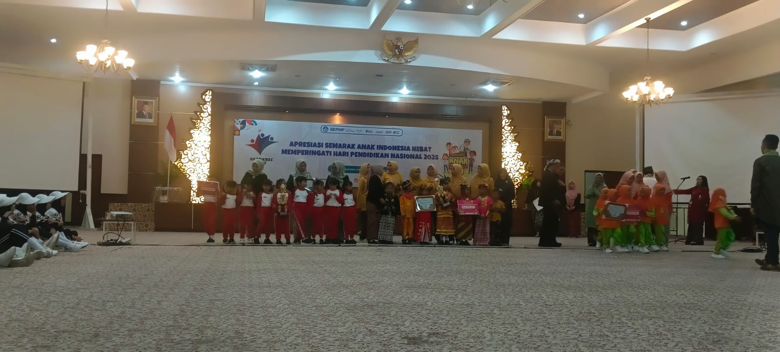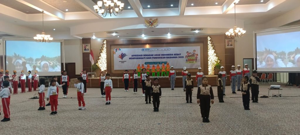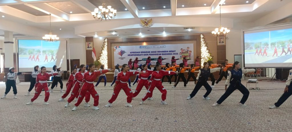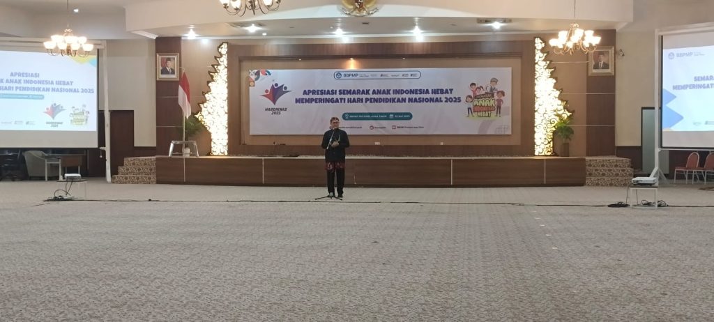 Surabaya – Upacara Hari Pendidikan Nasional (Hardiknas) di Balai Besar Penjaminan Mutu Pendidikan (BBPMP) Jawa Timur (Jatim) pada hari Jumat (2/5/2025) dimeriahkan dengan kehadiran para pemenang lomba Semarak Anak Indonesia Hebat yang menampilkan karya mereka.