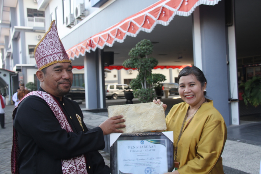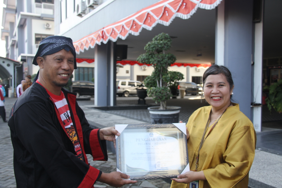 Pertama, pegawai yang berorientasi ke layanan, ramah, cekatan dan dapat diandalkan serta melakukan perbaikan tiada henti yang di raih oleh Asaria Wihanderi Haan.