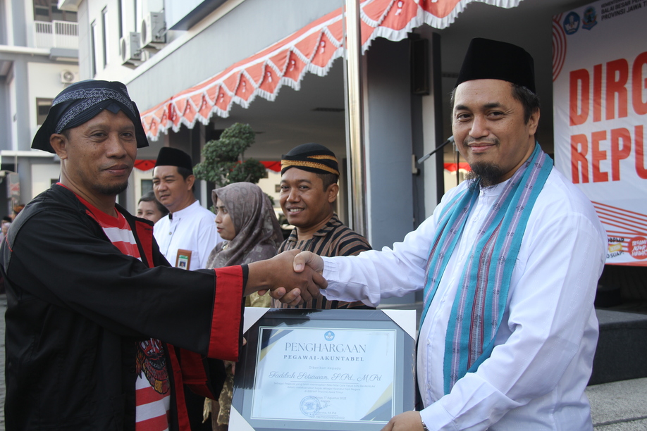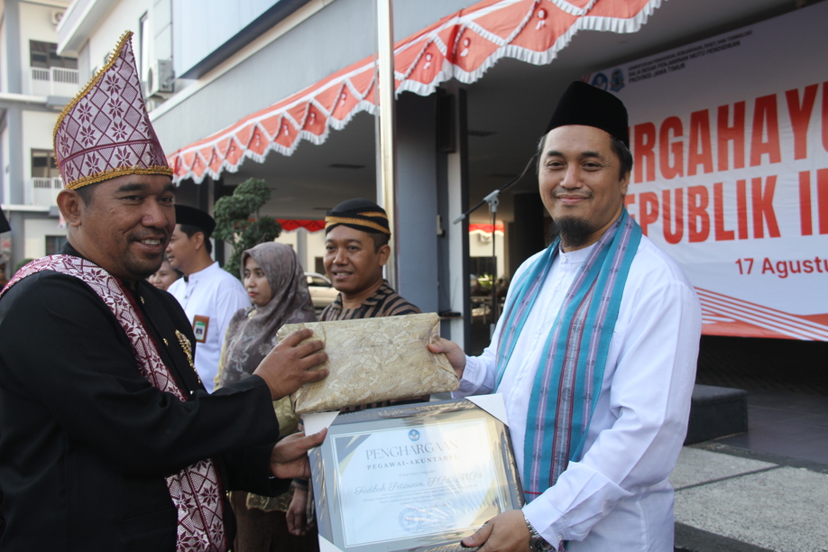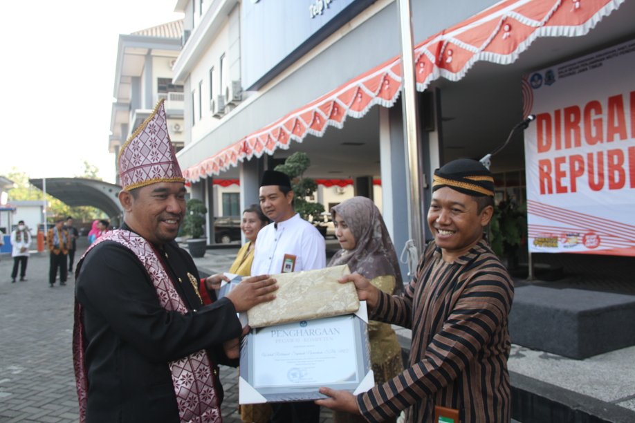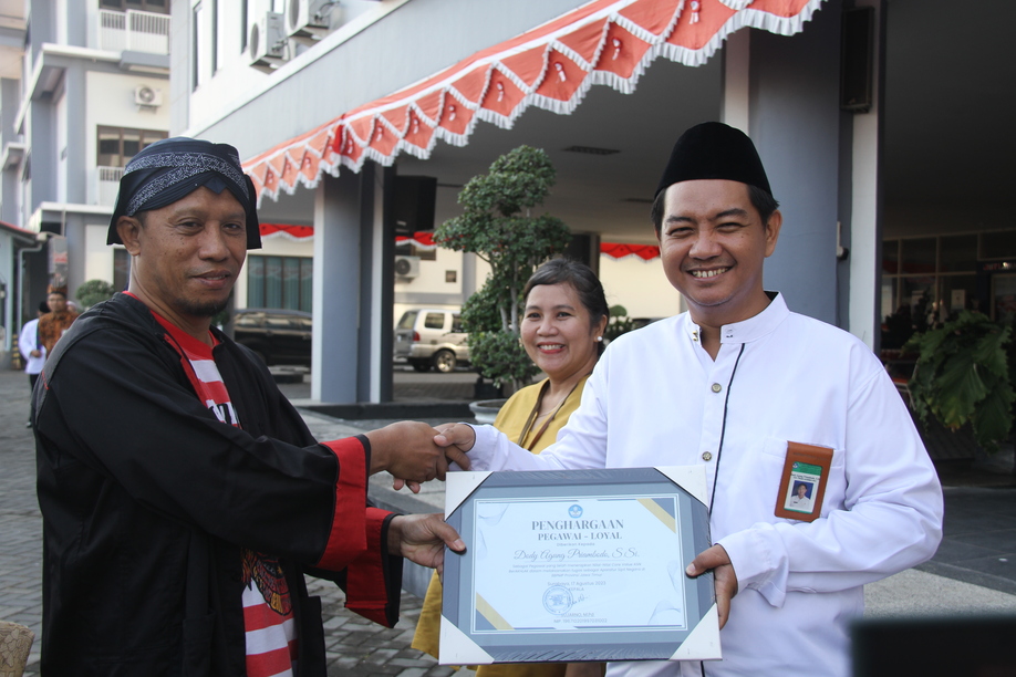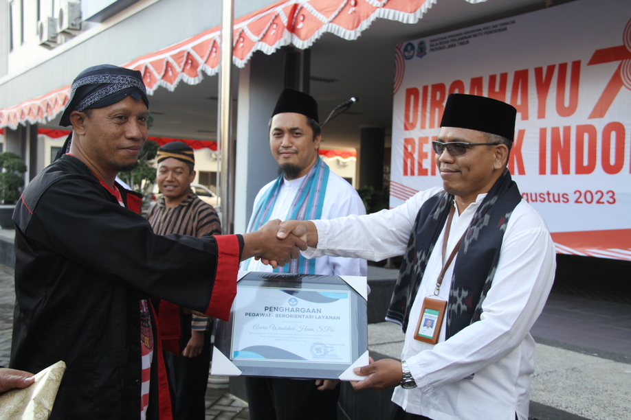 Menuju WBBM – Upacara HUT Kemerdekaan RI ke -78 di Balai Besar Penjaminan Mutu Pendidikan (BBPMP) Provinsi Jawa Timur Kamis (17/8/2023) diwarnai dengan pemberian penghargaan ke para pegawai yang memiliki kinerja baik dan prima dalam menerapkan core value berAKHLAK.