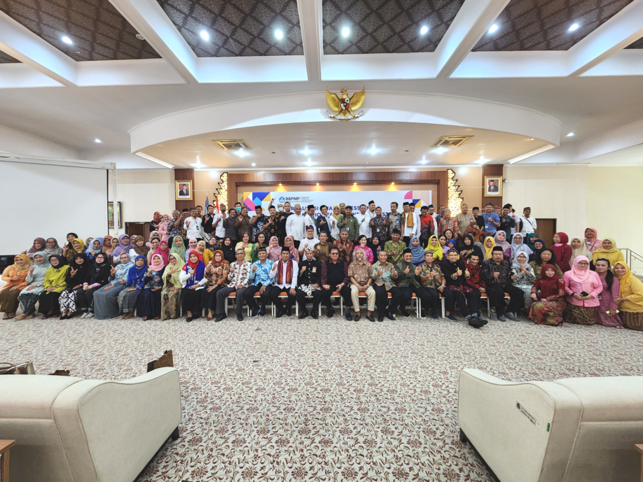 Berikut, Kepala BBPMP Provinsi Jawa Timur, Sujarno, M.Pd berfoto bersama seluruh pegawai, para konsultan, para pensiunan dan para undangan lainnya dari eksternal BBPMP Provinsi Jawa Timur: