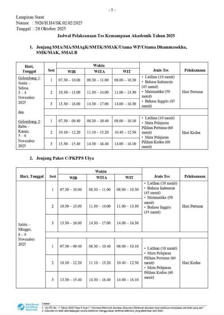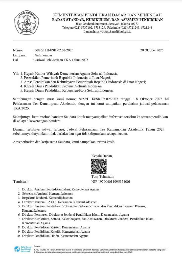 Berbeda dengan Ujian Nasional yang berfungsi sebagai penentu kelulusan, hasil TKA akan digunakan sebagai salah satu pertimbangan utama dalam Seleksi Nasional Berbasis Prestasi (SNBP) untuk penerimaan di perguruan tinggi negeri.
