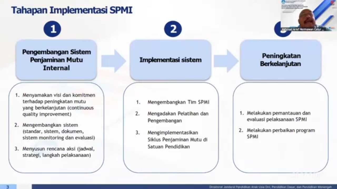 Ketiga unsur ini disebut Ahmad Arif Hermawan, pengawas SMP dari Kabupaten Probolinggo, narasumber di Kegiatan Optimalisasi Strategi Edukasi, Supervisi, dan Fasilitasi Penjaminan Mutu Pendidikan Jenjang SMP yang diselenggarakan secara daring oleh Balai Besar Penjaminan Mutu Pendidikan (BBPMP) Jawa Timur memiliki peran saling melengkapi agar sistem penjaminan mutu internal berjalan efektif di satuan pendidikan.