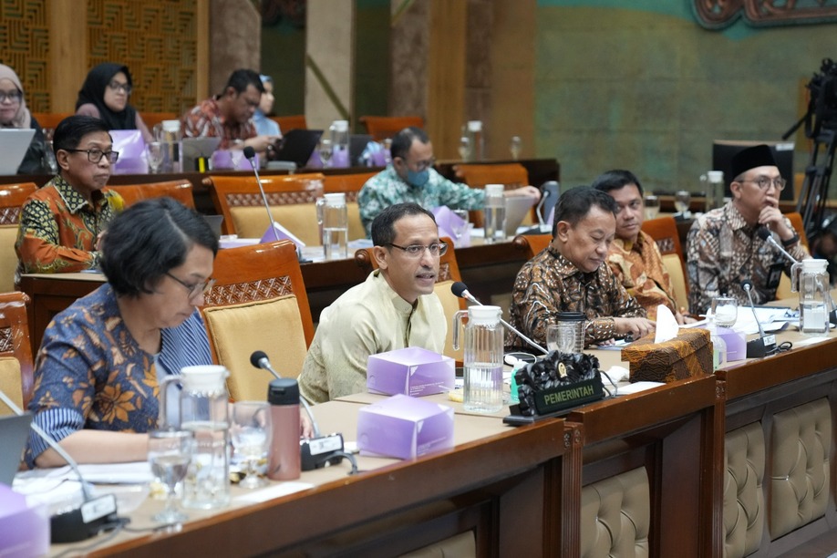 Komisi X DPR RI menyelenggarakan rapat kerja (Raker) bersama Kementerian Pendidikan, Kebudayaan, Riset, dan Teknologi (Kemendikbudristek) di Gedung Nusantara, DPR RI, Jakarta, Rabu (5/6). Dalam Raker tersebut, Menteri Pendidikan, Kebudayaan, Riset, dan Teknologi (Mendikbudristek), Nadiem Anwar Makarim, menyampaikan capaian kinerja program prioritas Kemendikbudristek Tahun 2023.