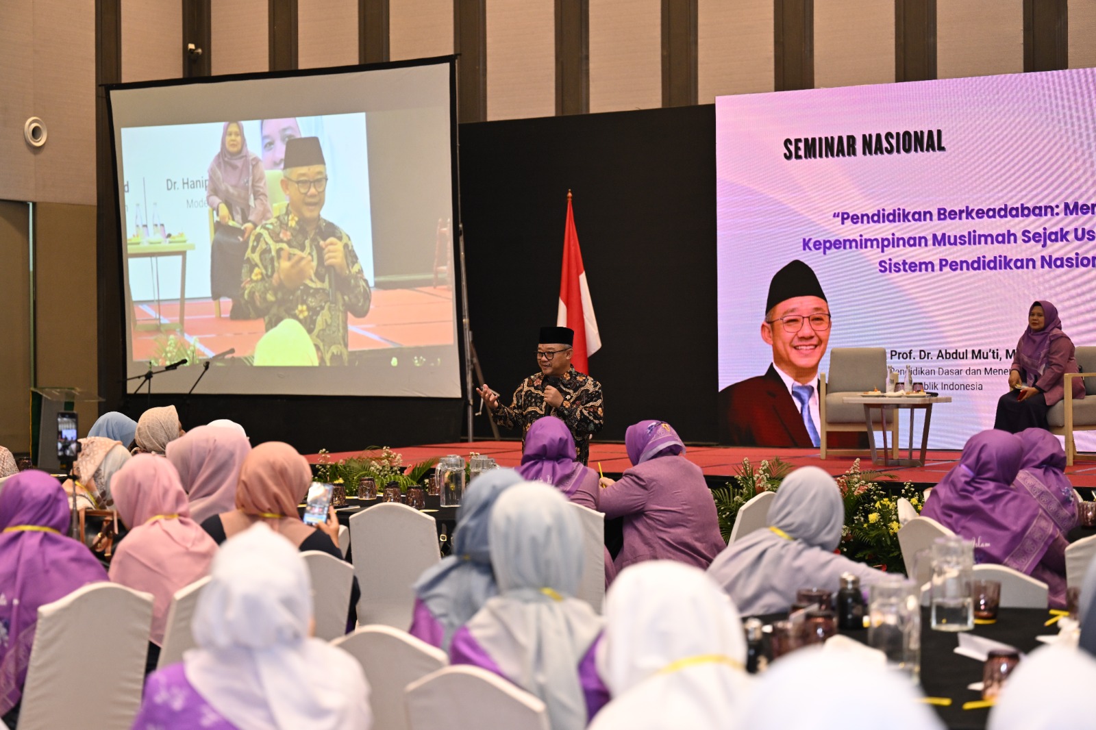 Dalam upaya penguatan karakter anak-anak Indonesia, Menteri Pendidikan Dasar dan Menengah (Mendikdasmen), Abdul Mu’ti hadir menjadi pembicara utama pada Seminar Nasional Wanita Islam yang bertajuk “Pendidikan Berkeadaban: Membangun Kepemimpinan Muslimah Sejak Usia Dini dalam Sistem Pendidikan Nasional” yang digelar di Jakarta, Rabu (10/9).