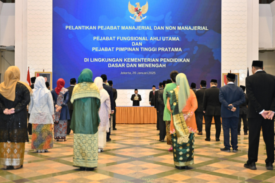 Menteri Pendidikan Dasar dan Menengah (Mendikdasmen) melantik satu Pejabat Fungsional Ahli Utama dan 39 Pimpinan Tinggi Pratama di Plasa Insan Berprestasi, Gedung A, Kantor Kemendikdasmen, Jakarta, Senin (20/1). Dalam sambutannya, Mendikdasmen menekankan agar para pegawai senantiasa suasana kerja dan sistem berorganisasi yang Responsif, Akuntabel, Melayani, Adaptif, Harmonis (RAMAH).