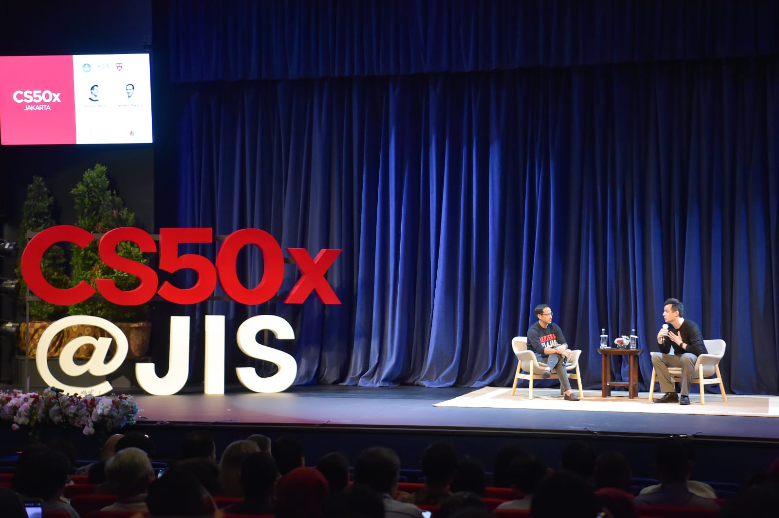 Menteri Pendidikan, Kebudayaan, Riset, dan Teknologi (Mendikbudristek) Nadiem Anwar Makarim menghadiri puncak Konferensi Pendidik CS50x dari Universitas Harvard di Jakarta Intercultural School, Jakarta, Kamis (9-3-2023). Konferensi Pendidik CS50 bertujuan memberdayakan guru lokal dengan perangkat dan keahlian yang diperlukan untuk mengintegrasikan materi pelajaran CS50x ke dalam kelas atau Kurikulum Merdeka. Dalam acara ini, Mendikbudristek memandu diskusi bersama pembicara utama, David J. Malan, Gordon McKay Professor dalam the Practice of Computer Science. Mendikbudristek juga berbagi mengenai Kurikulum Merdeka dan teknologi pendidikan.