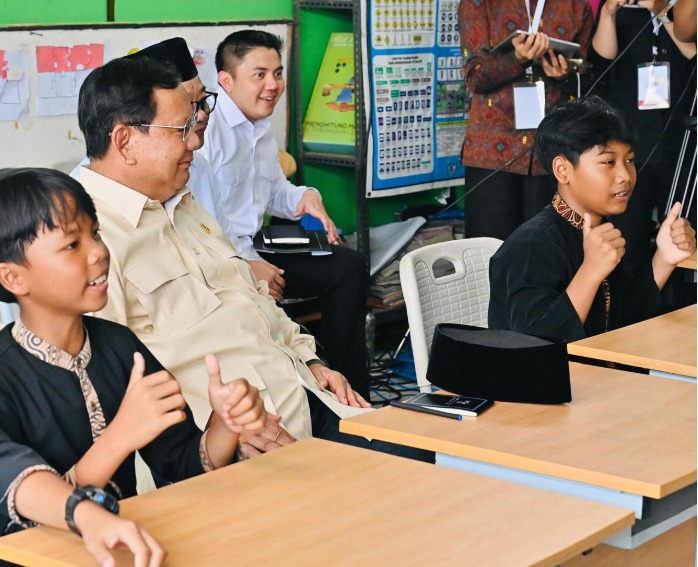 Setelah menyapa anak-anak sekolah yang berbaris rapi di sepanjang jalan menuju sekolah, Kepala Negara kemudian memasuki sekolah dan mengunjungi salah satu ruang kelas untuk menyaksikan langsung demonstrasi penggunaan papan interaktif atau smart board. Program pembelajaran ini menjadi bagian dari pendekatan teknologi digital yang didorong oleh pemerintah dalam kerangka transformasi pendidikan nasional.