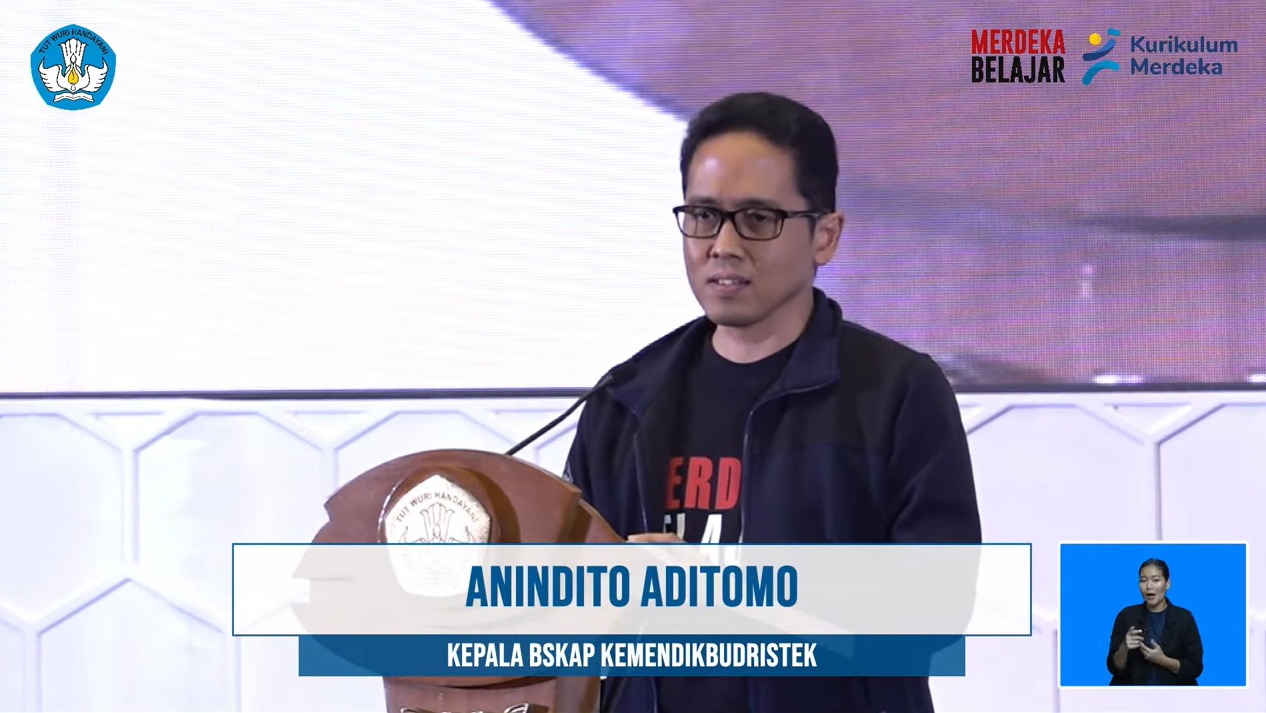 Kepala Badan Standar Kurikulum dan Asesmen Pendidikan, Anindito Aditomo, pada kesempatan yang sama turut merefleksikan perjalanan Kurikulum Merdeka. Ia mengungkapkan bahwa penerapan Kurikulum Merdeka dengan baik adalah sebuah proses belajar untuk mengubah cara pandang dan praktik pembelajaran, dari mengajar sebagai menyelesaikan materi yang ada di kurikulum, menuju paradigma yang lebih berorientasi pada murid.