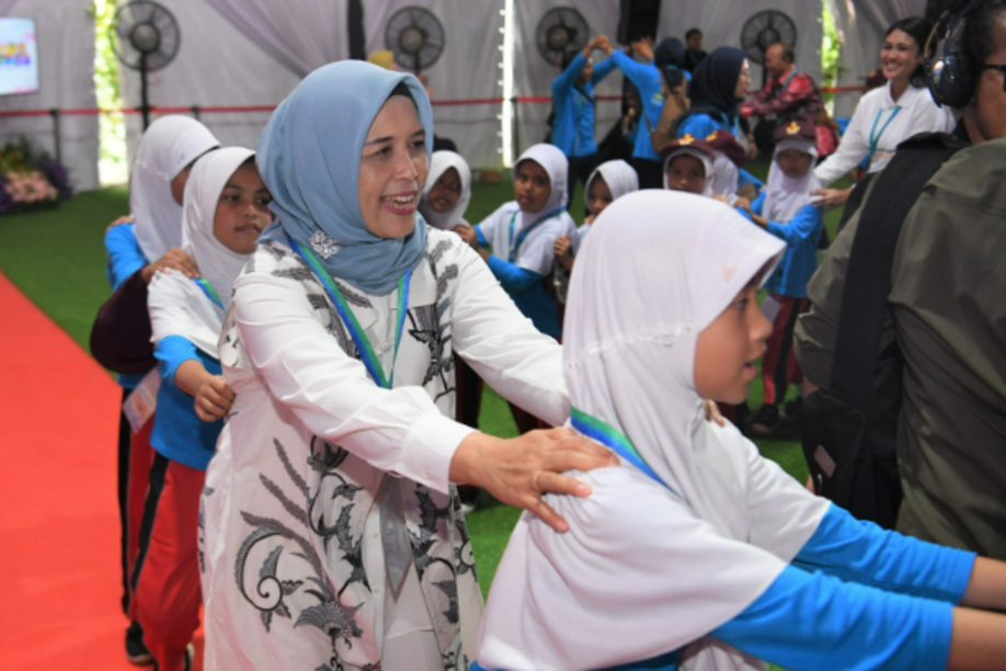 Senam Bersama Ibu Menteri dan Bermain Permainan Tradisional